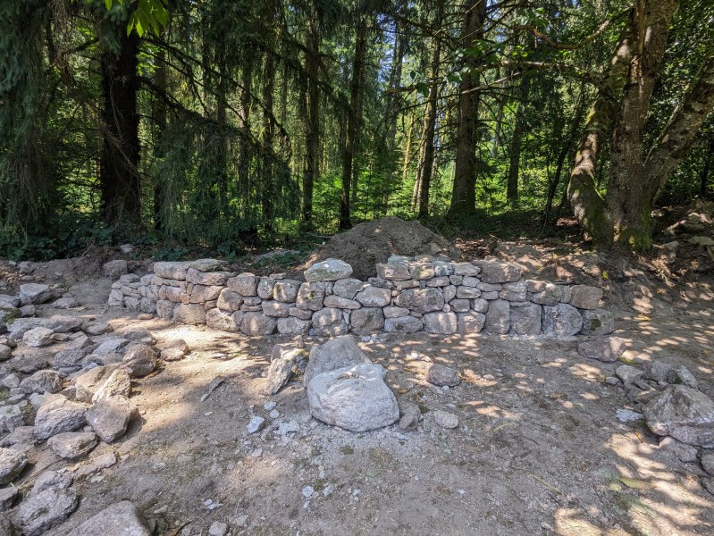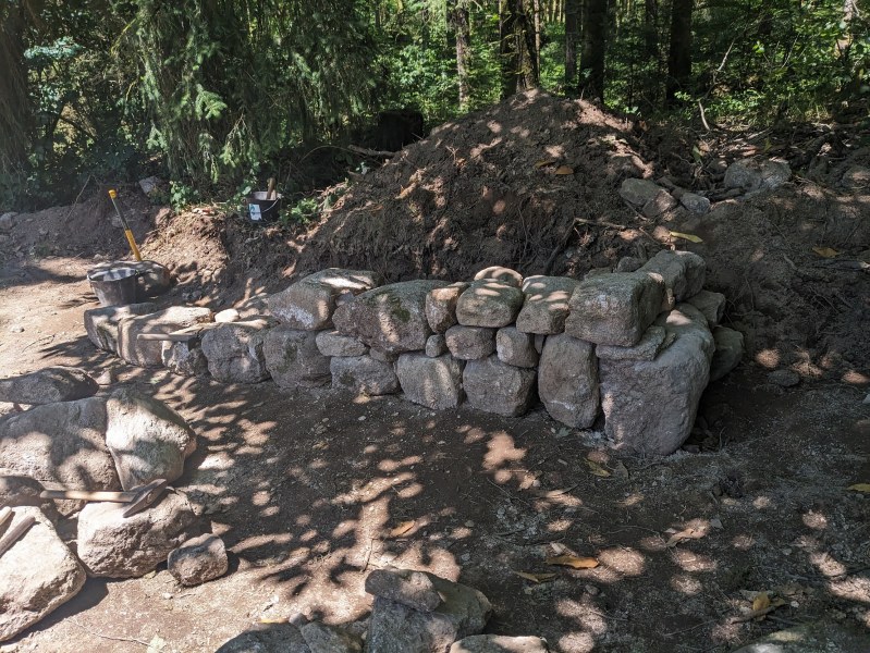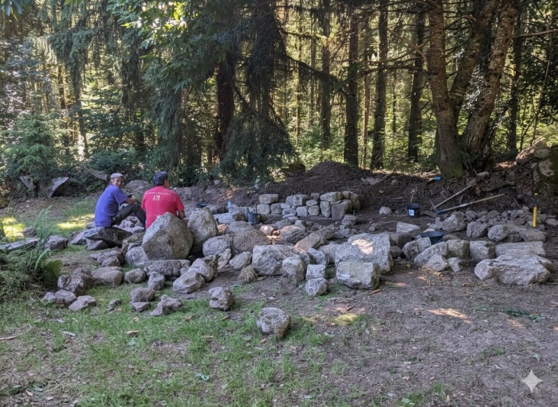 Reconstruction of a portion of the existing wall over 8 meters in length and 70 centimeters in height. Action carried out within the Abandoned village of Clédat.